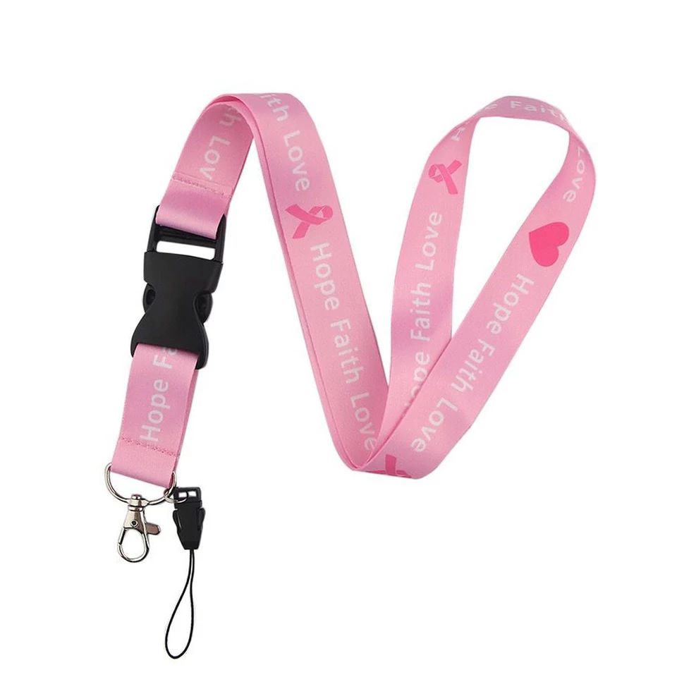 Carregue seu crachá, cartão, celular, emblema ou chaveiro com estilo. Esse cordão vem com a estampa da campanha prevenção ao cancer de mama, outubro rosa